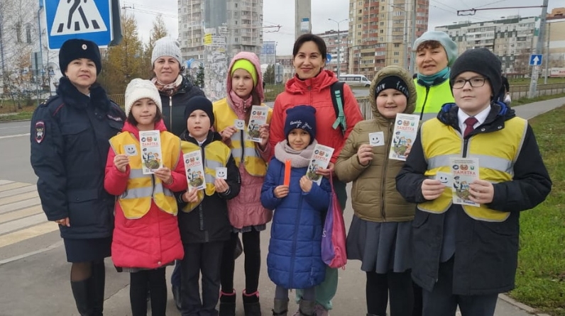 В рамках оперативно-профилактического мероприятия «Осенние каникулы» в Казани сотрудники отдела ГИБДД вместе с юными инспекторами движения и активистами «Родительского патруля» провели профилактическую акцию «На дороге юный пешеход».