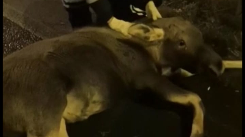 Во время патрулирования к инспекторам ДПС полка ДПС ОГИБДД УМВД России по г. Казани старшему лейтенанту полиции Айтугану Габдурахманову и старшему лейтенанту полиции Александру Григорьеву обратился автолюбитель, который сообщил, что на проезжей части лежит лось.