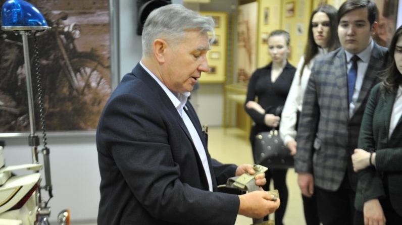 Будущие управленцы посетили музей истории ГАИ-ГИБДД. Представленные образцы формы автоинспекторов прошлого века, приборы для измерения скорости, которыми сотрудники ГИБДД пользовались до внедрения систем автоматической фиксации нарушений ПДД, и другие предметы, представляющие немалую историческую ценность полностью захватила внимание студентов.