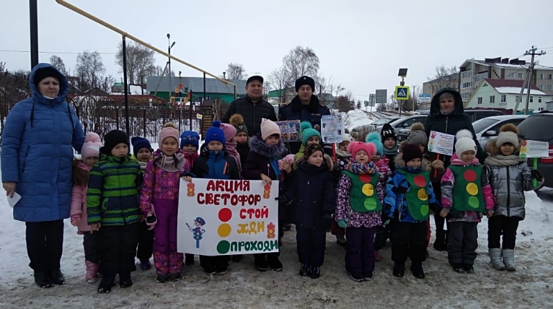 Сотрудники ГИБДД Мамадышского района Татарстана совместно с воспитанниками детского сада №12 «Лейсен» провели акцию «Светофор» по профилактике наездов на пешеходов.