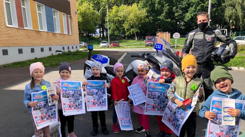 В преддверии профилактического мероприятия «Внимание – дети!» сотрудник ГИБДД, патрулирующий на мотоцикле ДПС, посетил одно из дошкольных учреждений Казани.