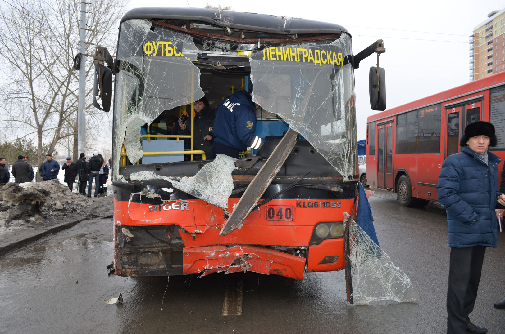 1 апреля 2013 года в 07.50 ч. водитель автобуса HIGER, маршрут № 7 (ул. Ленинградская – Футбольный стадион), следуя по пр. Ямашева со стороны 3-й транспортной дамбы в направлении ул. Адоратского, напротив дома № 100А по ул. Ямашева в результате неисправности рулевого управления совершил наезд на опору ЛЭП, после чего совершил наезд на группу пешеходов, которые находились на остановке общественного транспорта «Гаврилова» и после этого совершил наезд на стоящий автомобиль HUNDAISOLARIS.