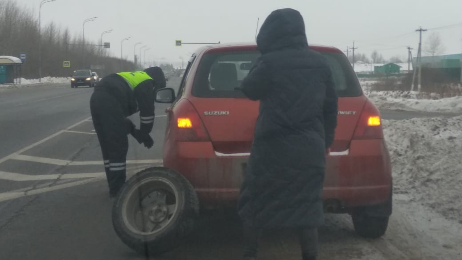 Во время несения службы на 30 км автодороги Казань – Оренбург к инспекторам ДПС специализированного батальона ДПС ГИБДД МВД по Республике Татарстан лейтенанту полиции Ильназу Шавалиеву и лейтенанту полиции Артуру Гарифуллину обратилась женщина и попросила помощи. Она пояснила, что во время движения ее автомобиль начало «уводить» в сторону. Тогда она остановилась у края проезжей части, осмотрела автомобиль и увидела, что повреждена шина. Самостоятельно заменить колесо автолюбительница не могла.