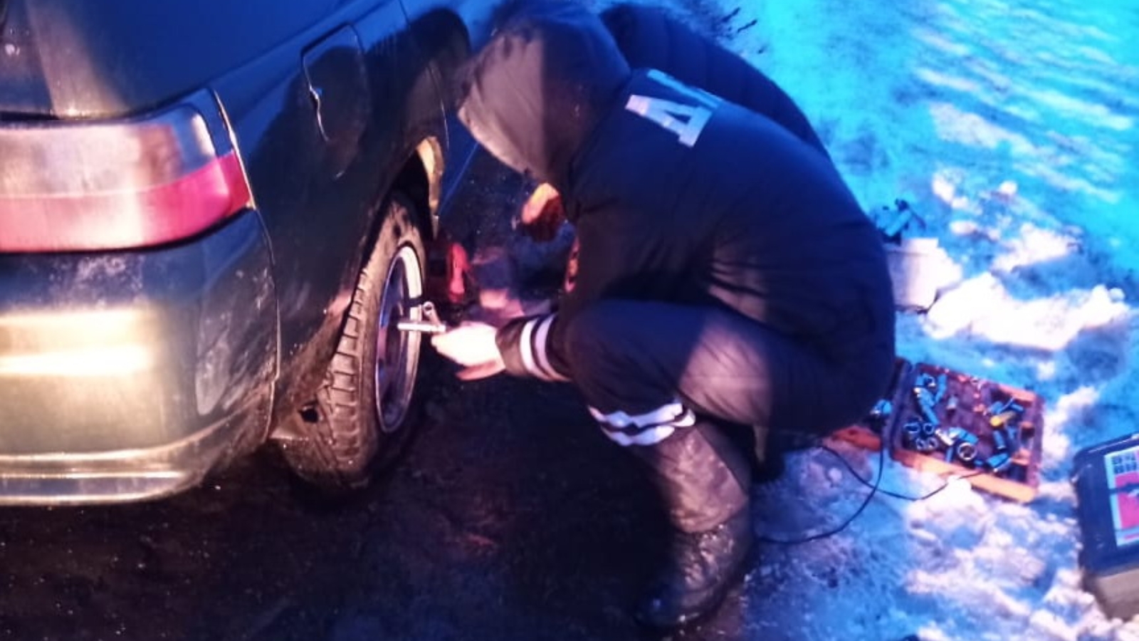 Во время несения службы на автодороге Заинск – Бухарай к экипажу ДПС в составе начальника отделения ГИБДД ОМВД России по Заинскому району майора полиции Рамиля Гарифуллина и стажёра по должности инспектора ДПС Альберта Арсланова обратился житель Нижнекамска. Он рассказал, что во время движения его автомобиль начало «уводить» в сторону. Тогда он остановился у края проезжей части, осмотрел автомобиль и увидел, что повреждена шина. Самостоятельно заменить колесо водитель не смог, так как у него отсутствовали необходимые инструменты.