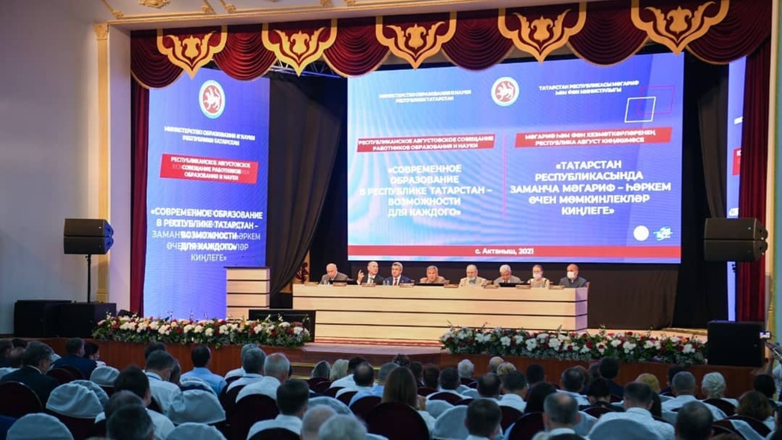 Республиканское августовское совещании работников образования и науки прошло в селе Актаныш. Его провел Президент Республики Татарстан Рустам Минниханов. В мероприятии также приняли участие Государственный Советник Республики Татарстан Минтимер Шаймиев, Председатель Государственного Совета Республики Татарстан Фарид Мухаметшин, руководитель Федеральной службы по надзору в сфере образования и науки Анзор Музаев.