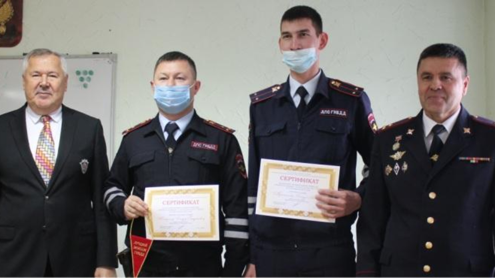 Совет ветеранов ГИБДД МВД по Республике Татарстан наградил переходящим вымпелом и ценными подарками сотрудников Госавтоинспекции, добившихся особых успехов в деле обеспечения безопасности дорожного движения по итогам третьего квартала 2021 года. Председатель совета ветеранов ГИБДД МВД по Республике Татарстан Валерий Савкин вручил почетный вымпел экипажу ДПС ГИБДД УМВД России по г. Набережные Челны в составе старшего лейтенанта полиции Ильнура Шайхуллина и лейтенанта полиции Ильгиза Муктасимова.
