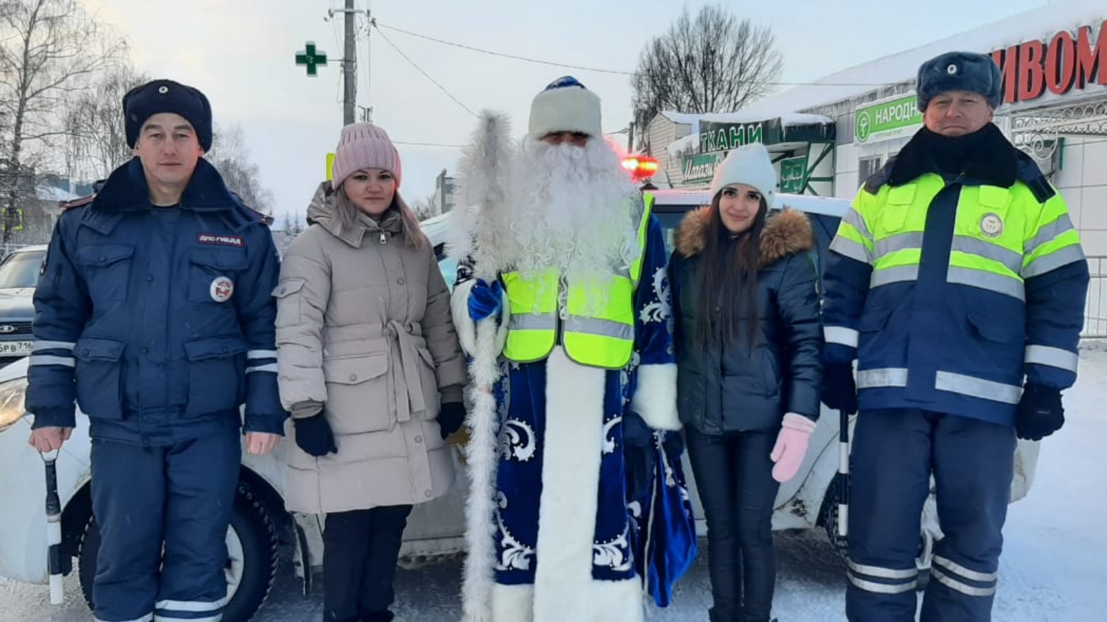 Полицейские вместе со сказочными героями призвали пешеходов и водителей быть внимательнее на дороге. Юные помощники Госавтоинспекции подготовили для Деда Мороза и Снегурочки листовки с советами по дорожной безопасности, а также праздничные сувениры для участников дорожного движения.