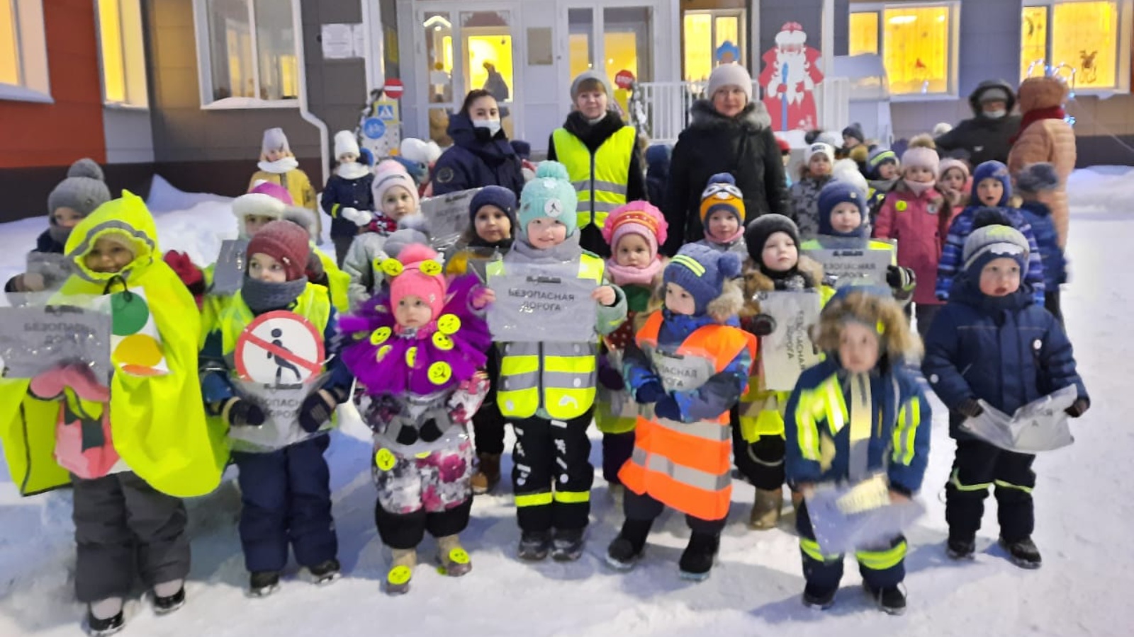 Юные помощники автоинспекторов в одежде со световозвращающими элементами и карманными фонарями напомнили взрослым, как важно соблюдать правила дорожного движения. Сделали они в виде флешмоба: помимо коротких, но емких стихов ребята исполнили тематический танец.