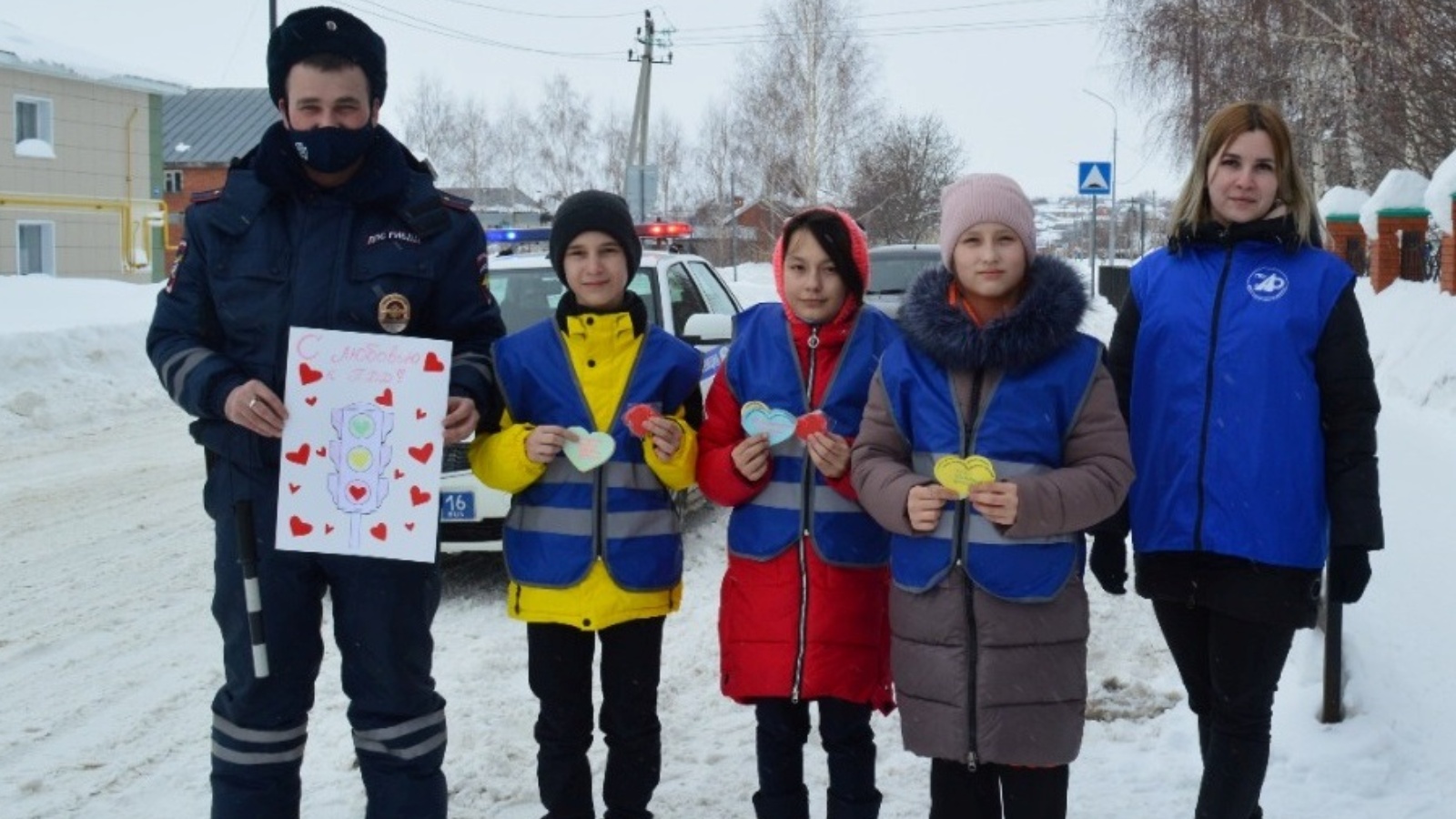 Юные помощники Госавтоинспекторов заранее подготовили тематические рисунки и листовки в форме сердец с обращением к участникам дорожного движения неукоснительно соблюдать ПДД.