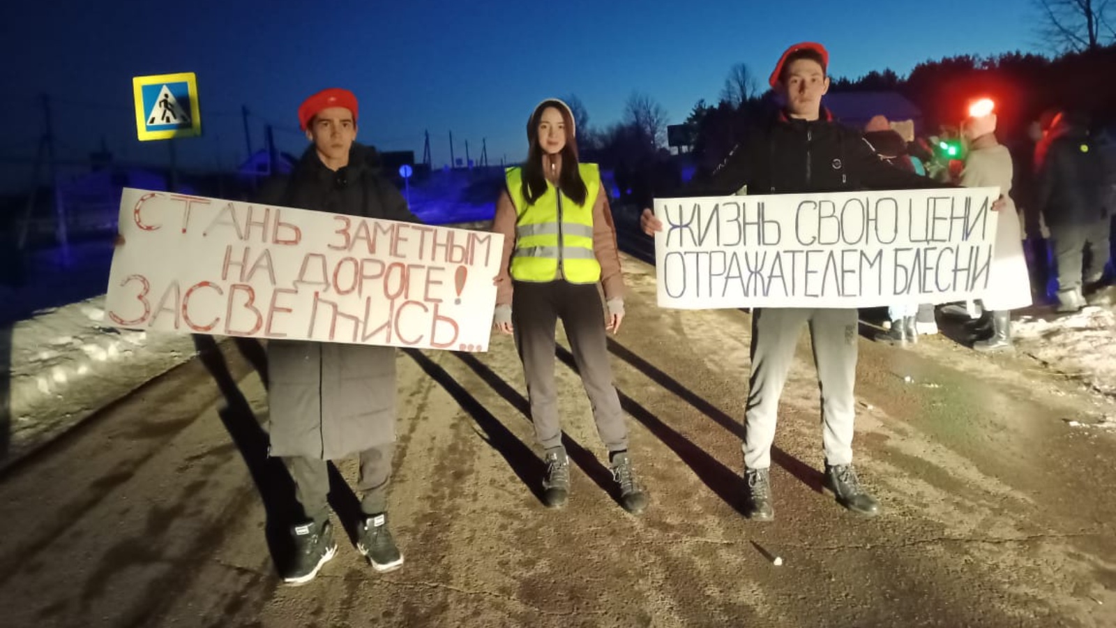 Всем участникам акции были розданы световозвращающие наклейки и тематические памятки о важном использовании световозвращающих элементов на одежде.