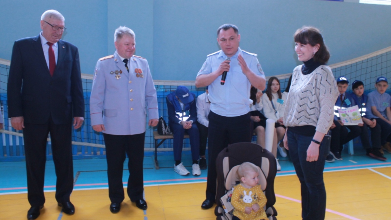 Мероприятие закончилось приятным сюрпризом для многодетных семей. Руководители ветеранской организации ГИБДД Валерий Савкин и Иван Гафуров вручили им детские автокресла.