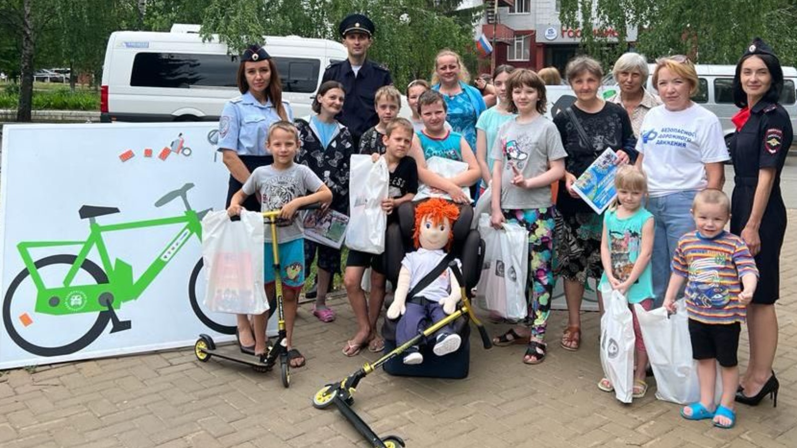 Дети собирали пазлы по БДД, участвовали в играх, проходили испытания на самокатах и велосипедах, изучали защитную экипировку, устройство велосипеда. Ребятам рассказали правила поведения на дороге для велосипедистов, пешеходов, а взрослым о необходимости использования детских удерживающих устройств и использования световозвращающих элементов.