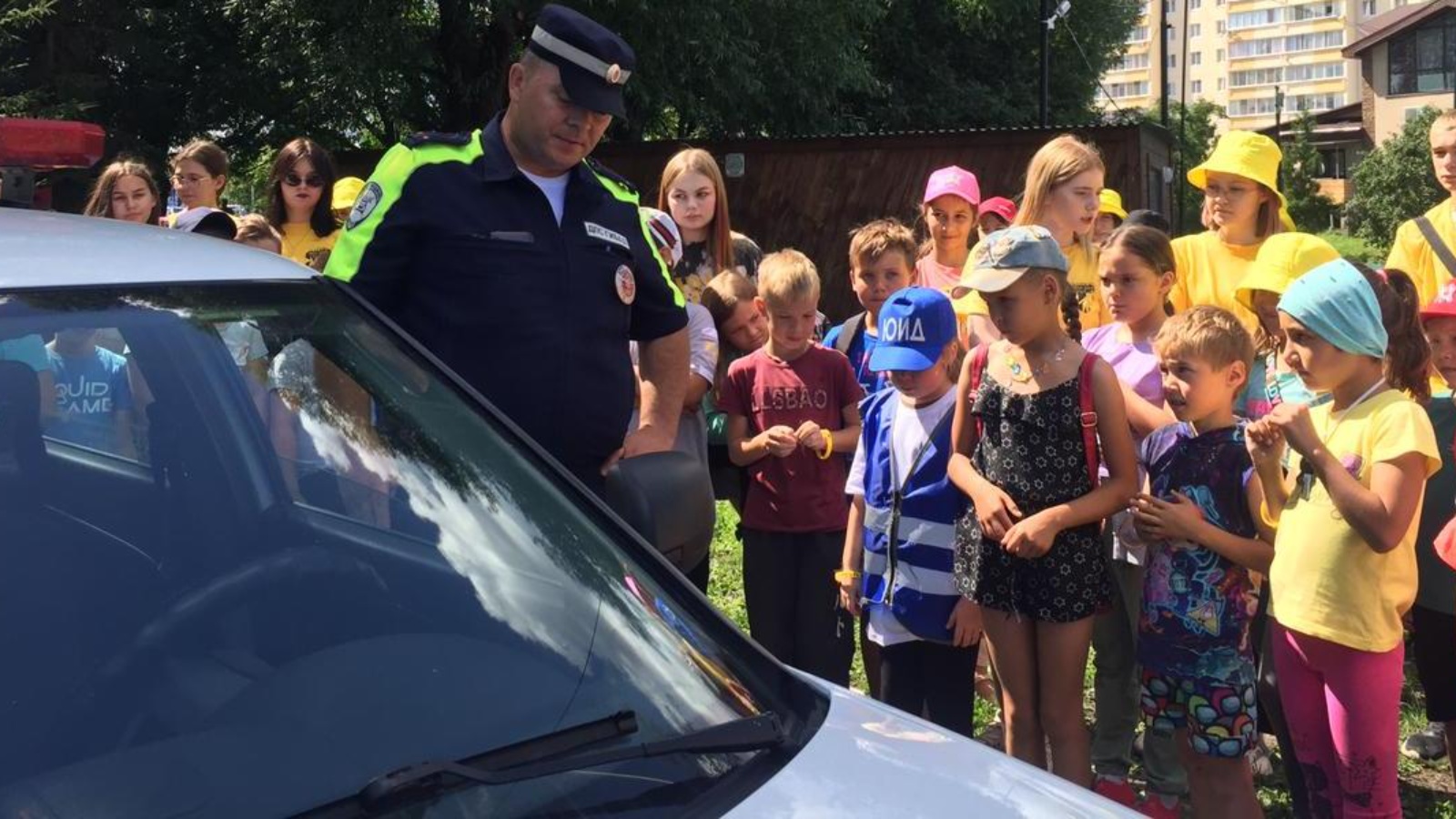 Автоинспекторы и работники ГБУ «Безопасность дорожного движения» встретились с детьми, участвующими в проекте «Лагерь моего двора» в Заинске.