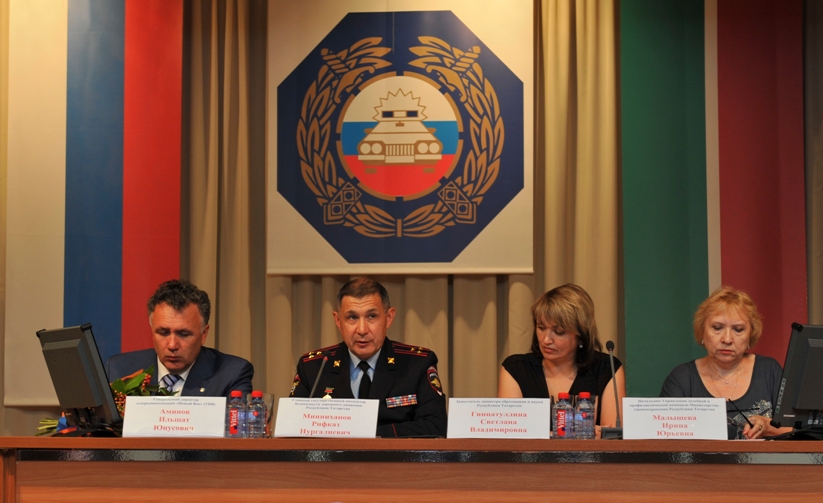 Брифинг начался с награждения генерального директора телерадиокомпании «Новый век» Ильшата Аминова нагрудным знаком «За отличие в службе ГИБДД» 2 степени. Формулировка ведомственного приказа кратка и лаконична «За активное содействие Госавтоинспекции МВД по Республике Татарстан в обеспечении мероприятий, направленных на безопасность дорожного движения, а также в связи с 50-летием»…Профилактика детской аварийности возможно только при консолидации усилий всех заинтересованных министерств и ведомств. В зале киноконцертного зала Управления ГИБДД присутствовали руководители «Детско-юношеской автомобильной школы», Федерации автомотоспорта республики, Научного центра безопасности жизнедеятельности, Дирекции финансирования научных и образовательных программ, представители Общественного специального дивизиона ГИБДД УМВД России по городу Казани и организации «Ветераны ГАИ-ГИБДД». Объединение усилий актуально именно в этот период – напомним, что по статистике прошлых лет именно в августе и сентябре учащаются факты ДТП с участием детей.