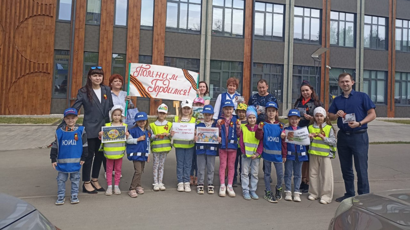 Автоинспекторы совместно работниками ГБУ "БДД", муниципальными служащими и воспитанниками детского сада №56 "Крепыш" провели акцию "Георгиевская лента – засветись!". В ходе мероприятия участники акции узнали о самой символике георгиевской ленты, а также изготовили броши из георгиевской ленты со светоотражающими элементами. Ребята вышли на оживленную улицу города и вручали броши участникам дорожного движения, поздравляли с праздником, рассказывали стихи и напоминали о необходимости соблюдения ПДД. Также всем участникам акции были вручены памятки и наклейки на автомобили с призывами соблюдать ПДД.