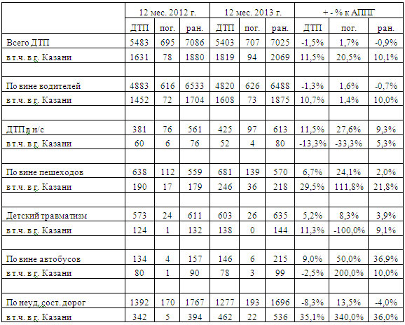 Дорожно-транспортная ситуация в Республике Татарстан. Итоги 2013 года