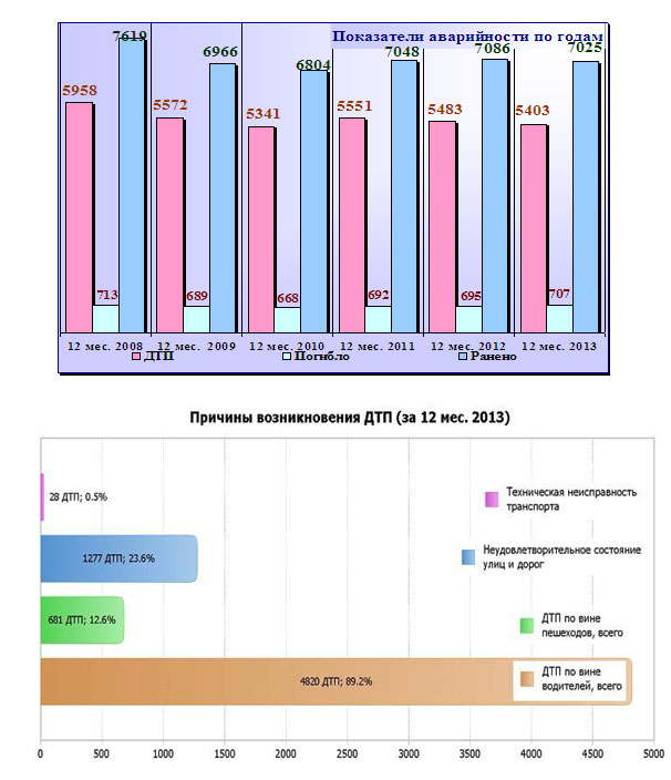За 12 месяцев 2013 года пресечено 5 млн. 484,9 тыс. нарушений Правил дорожного движения (-6,4%), из которых 5 млн. 366 тыс. совершены водителями транспортных средств (-6,5%) и 118 тыс. (+1,7%) – пешеходами.