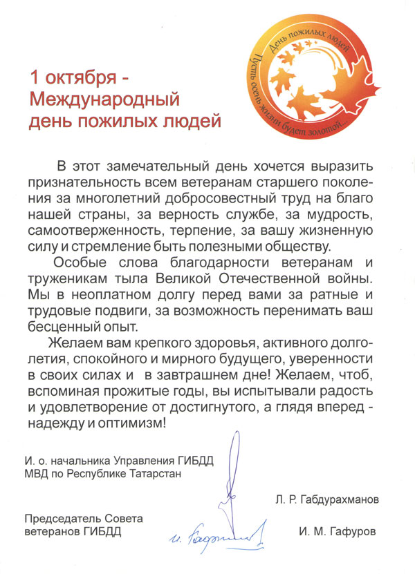 Поздравление с Международным днем пожилых людей